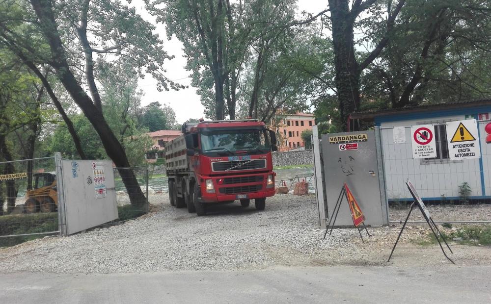 E ha dato corso per davvero: è stato aperto il cancello d'ingresso dell'area di cantiere in via Pusterla, sono entrati i mezzi della affidataria dell'intervento, per conto del Comune, Brenta Lavori Srl e sono iniziate le operazioni di rimozione del materiale della “strada” sotto il Ponte.
