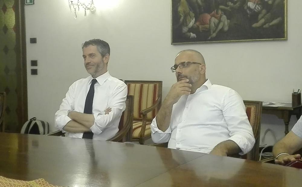 Il sindaco Riccardo Poletto e il vicesindaco Roberto Campagnolo in conferenza stampa (foto Alessandro Tich)