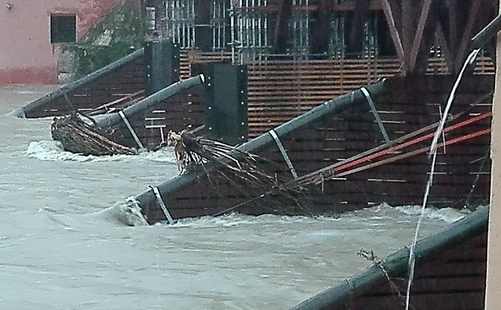 L'aumento del livello idrometrico è stato costante dalle 9.30, ora del superamento della soglia di 1,55 m. che ha comportato la chiusura del Ponte Vecchio, fino a quasi mezzanotte. Poi, grazie alla temporanea tregua delle precipitazioni sul Veneto montano e pedemontano, il livello ha cominciato lentamente a calare. L'ultima rilevazione Arpav di questa mattina, con dato aggiornato alle 10.30, registra una quota idrometrica a Barziza di 2,58 metri. Un abbassamento di livello che viene confermato anche dagli indicatori “visivi”: sugli edifici in riva al fiume a ridosso del Ponte è ben visibile la traccia dell'acqua rientrata nel corso della notte di una sessantina di centimetri. E l'inferriata che delimita le scalette dietro al Ponte in borgo Angarano, e che si affaccia sul fiume, ieri sera era completamente sommersa dall'acqua mentre stamane è parzialmente riaffiorata.