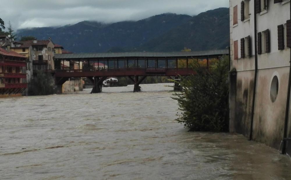 Ora il fiume è sempre grosso e veloce, col suo carico di tronchi e di rami strappati alle rive nel suo corso superiore, ma - per così dire - sta rientrando nei ranghi della brentana “ordinaria”. E il Ponte Vecchio è sempre e ancora lì, storto e in cattive condizioni, ma con tutte le strutture al loro posto. Barcollo ma non mollo.