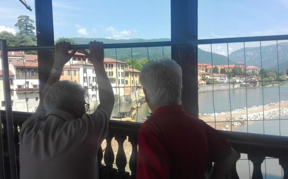 Chi è transitato, in tutto questo tempo, sul Ponte di Bassano ha avuto anche una doppia occasione di aggrapparsi. Ovvero di afferrarsi alle alte transenne di delimitazione del passaggio pedonale per assistere all'ipnotico spettacolo della costruzione o smantellamento delle ture o per scattare una foto del panorama del fiume e dei monti trovando un pertugio in cui infilare il telefonino tra una grata e l'altra della doppia fila di barriere. Ma “aggrapparsi” anche nel senso più ampio di consumare i prodotti della nota grapperia che si trova sulla spalla sinistra del manufatto da restaurare.