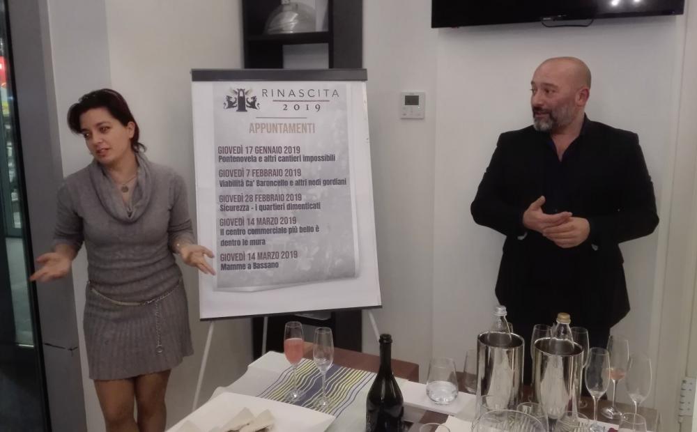 E nel tardo pomeriggio di ieri ha chiamato a raccolta “iscritti e simpatizzanti” all'Hotel Glamour per un “primo incontro” intitolato “La tua idea per Bassano” (sottotitolo: “Scambio di opinioni per costruire la Bassano che verrà”) e comprensivo di “confronto e rinfresco”. In realtà è stato più rinfresco che confronto, visto che pizzette, tramezzini e calici di prosecco gentilmente offerti dai Rinascenti sono andati inevitabilmente a ruba mentre la discussione sulle questioni della città si è più che altro concentrata in colloqui a tu per tu in mezzo al gruppo di partecipanti. A fare gli onori di casa sono stati i tre referenti dell'associazione (Giuseppe Rosato, Ilaria Brunelli e Riccardo Bonanno) e i primi due, nell'occasione, hanno presentato un programma di cinque incontri che nei primi tre mesi del 2019 affronteranno altrettante tematiche di interesse civico. Aggettivo che non metto a caso, dal momento che, come “sfuggito” a Rosato in sede di presentazione, si tratta delle prossime iniziative che ha in cantiere “l'associazione, o lista civica che sarà”. Ufficialmente siamo ancora nella fase dell'abbottonamento, anche perché fuori fa freddo, ma tra le righe i segnali che fanno presagire una discesa in campo di “Rinascita 2019” all'appuntamento con gli elettori bassanesi ci sono tutti. A cominciare dalla presenza, all'incontro al Glamour, del segretario cittadino della Lega Roberto Gerin, che a seguito dell'accordo siglato lo scorso 7 aprile con le altre forze di centrodestra attualmente presenti in consiglio comunale (Forza Italia, lista civica Impegno per Bassano e lista civica Bassano ConGiunta) rappresenta la formazione capofila della coalizione di centrodestra nella prospettiva delle amministrative dell'anno prossimo.