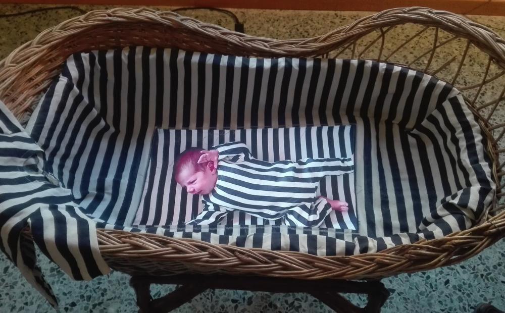 E infine Marco Chiurato, l'imprevedibile, colloca un video del suo figlio neonato, con un pigiama a righe, sul giaciglio a righe della culla di famiglia originale in vimini di Maurizio Cattelan, comunicando il senso di “incarcerazione” del piccolo nella cella dei desideri e delle aspirazioni nutrite per lui dal padre. Ma le “sorprese” di Chiurato non finiscono qui.