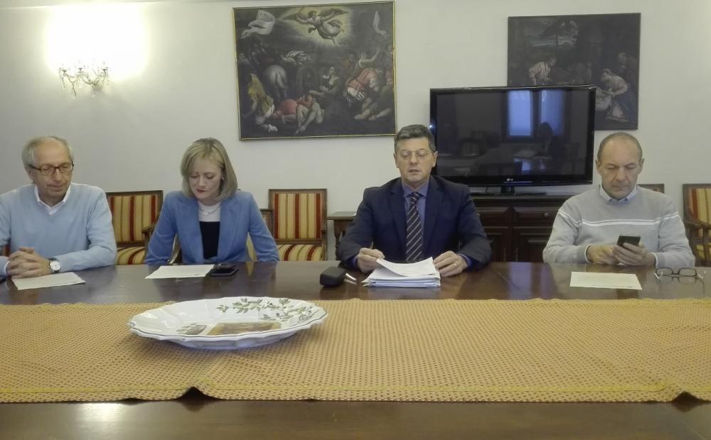 La Società del Quartetto (sindaco Elena Pavan, vicesindaco e assessore al Bilancio Roberto Marin, assessore allo Sport Mariano Scotton e assessore ai Lavori Pubblici Andrea Zonta) incontra la stampa in municipio per rendere pubblica la nuova lieta novella.