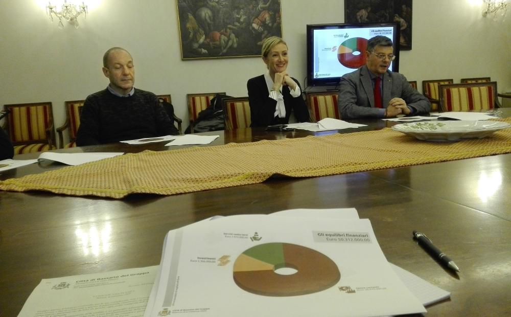 La conferenza stampa di presentazione del bilancio comunale di previsione 2020, col sindaco Pavan e gli assessori Marin e Zonta (foto Alessandro Tich)