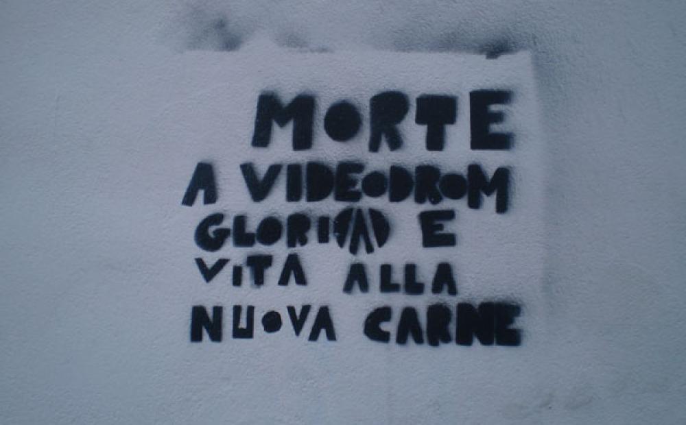 Un graffito del writer "pizzicato", su un muro di Vicolo XX Settembre