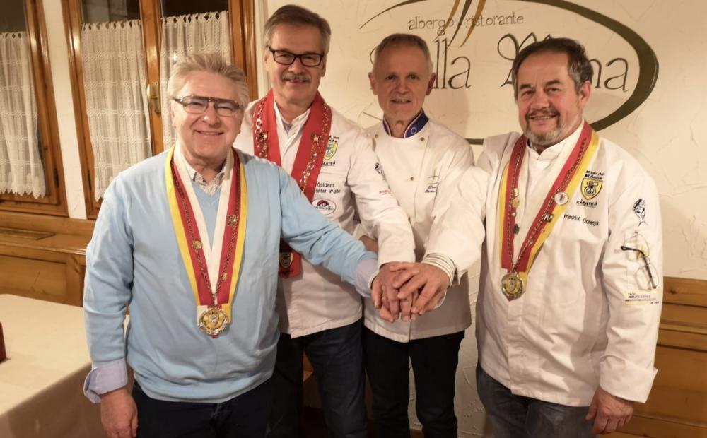 In cucina, notoriamente, non c'è bisogno del vocabolario. L'unico volume che può ben figurare tra pentole e fornelli è il libro di ricette. Si possono parlare lingue diverse, come in questo caso l'italiano e il tedesco, ma il linguaggio è uno solo e ben compreso da tutti: quello della tavola, dell'arte culinaria e della formazione sul campo delle giovani generazioni. Sono gli elementi che hanno favorito l'incontro diretto tra il Gruppo Ristoratori Bassanesi e il KKK - Klub der Köche Kärnten, il sodalizio che rappresenta i cuochi del land austriaco della Carinzia. Una delegazione del club carinziano si è recata in visita nei giorni scorsi nel nostro territorio per predisporre, sul piano organizzativo, una inedita e interessante collaborazione coi ristoratori ai piedi del Grappa.
