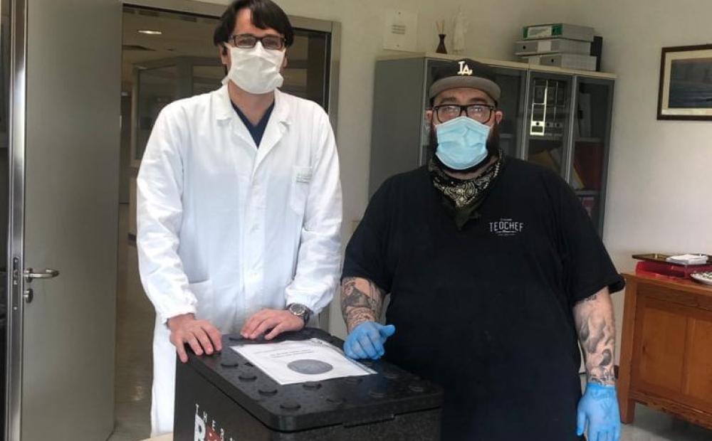 “Dedichiamo del tempo a chi non ne ha”. L’appello di Teochef a fornitori, aziende e colleghi ristoratori. Loro donano le materie prime, lui le trasforma in cose buone da mangiare, consegnandole al personale sanitario del San Bassiano