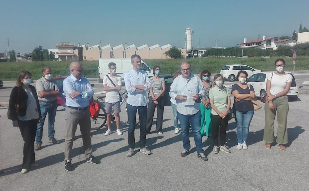 È proprio qui, su questo parcheggio che si affaccia sulla Statale 47, che i cronisti vengono convocati a una conferenza stampa indetta congiuntamente da due civiche di opposizione di Bassano del Grappa e Rosà: Bassano Passione Comune e Rosà Civica, unite dalla passione comune per la risoluzione del problema del gigantesco tappo quotidiano.