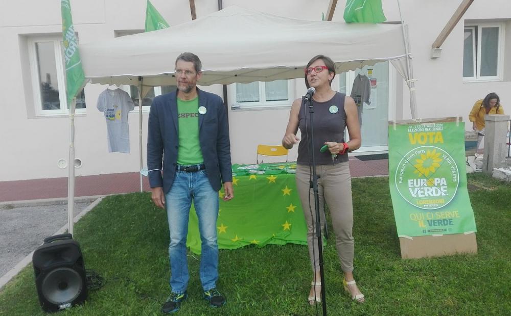 I candidati di Europa Verde Renzo Masolo e Gaia Bollini durante l'assemblea pubblica al parcheggio