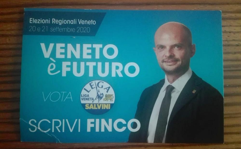 Dell'incredibile e a suo modo tragicomico santino elettorale di Joe Formaggio, candidato alle regionali con Fratelli d'Italia, mi sono già occupato nella mia rubrica di editoriali “Il Tich Nervoso”. Oggi invece dedico la mia e la vostra attenzione al pezzo più pregiato della collezione 2020: il santino del candidato della Lega Nicola Finco. Non per il santino in sé, che non ha nulla di trascendentale e attualmente è anche un po' sgualcito, ma per la circostanza che lo ha fatto pervenire in mio possesso.