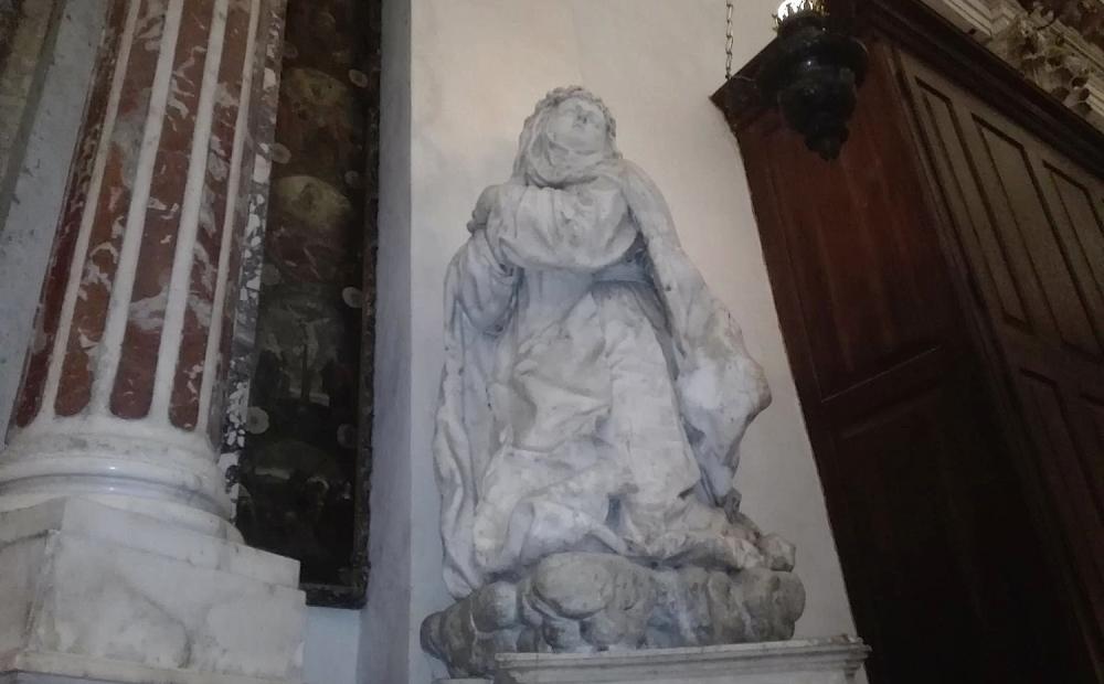 “Orazio Marinali - prosegue il parroco di Santa Maria in Colle, sempre in tema di coincidenze - ha realizzato le statue per l'Altare del Rosario ai primi del '700, a pochissimi anni dall'apertura della causa di beatificazione della “Caterina da Siena bassanese”: la Beata Giovanna Maria Bonomo.” Poi l'abate di Bassano sottolinea “l'attualità” della Santa. “Santa Caterina - spiega - ha fatto di tutto per rimanere nascosta, in relazione amorosa con Cristo, con Dio e con la Chiesa. Eppure è diventata famosissima, consigliera dei Papi e interlocutrice dei grandi del suo tempo. Era un'epoca di Papi e di antipapi e lei ha sempre agito per la ricostruzione della pace. Questa ce la rende molto attuale. Era anche un'epoca di epidemie e lei andava tra gli ammalati alla ricerca di Cristo. Anche questo la rende contemporanea a noi.” Vedete dunque quante cose si celano dietro a quella statua che Marinali ha tramandato ai posteri.