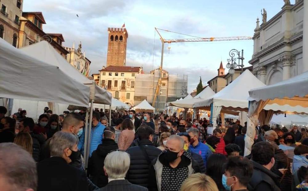 Clima da timori di “pre-lockdown” in questa giornata festiva di sole a Bassano: la città presa letteralmente d'assalto dai visitatori della domenica, grazie alle due fiere in piazza confermate nonostante tutto