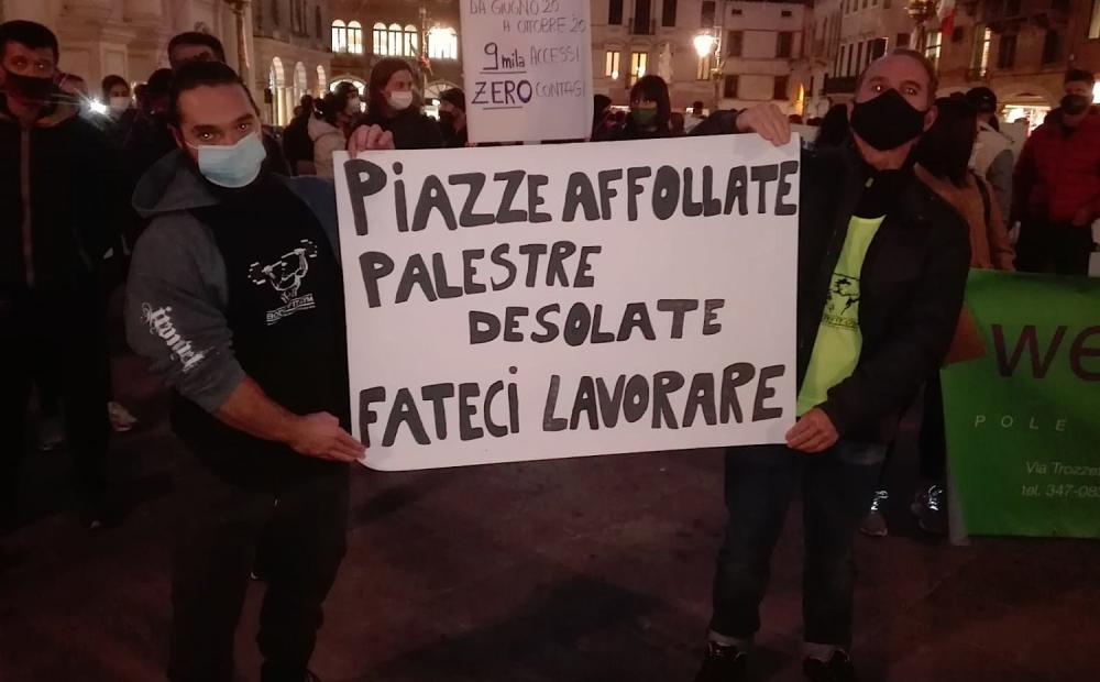 A Bassano la manifestazione pacifica per la riapertura delle palestre e dei centri sportivi, chiusi per Dpcm. Richiesta al governo la libertà di lavorare: “Nelle nostre strutture migliaia di accessi e 0 contagi”