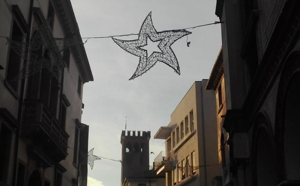 Quest'anno non ci saranno le casette, ma saremo comunque inondati di luci. Sono previste luminarie sospese in tutte le vie e piazze del centro storico, ampliate con l'intera via Beata Giovanna fino ai Pilastroni e con via Angarano fino alla rotatoria di viale Diaz.