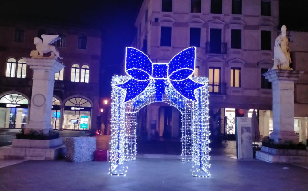 Un mio caro amico che vive all’estero, a cui ho mandato una foto del baldacchino tutto luci, lo ha ribattezzato “il farfallone”. Basta guardare l’immagine che ho pubblicato qui sopra per capire il perché. La gente si immortala sotto la volta del grande fiocco a papillon per raccogliere un souvenir bassanese di questo assurdo Natale 2020.