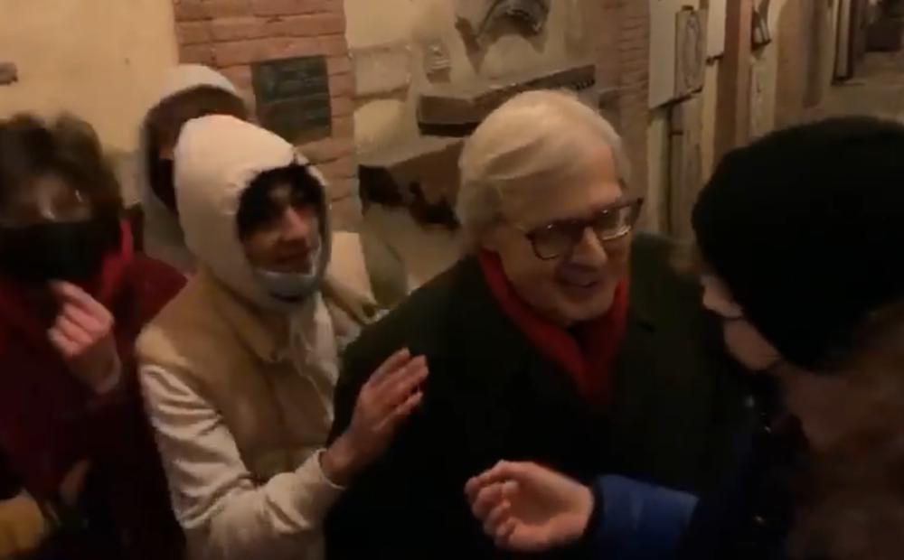 Un fermo-immagine del video. Fonte immagine: Facebook/Vittorio Sgarbi