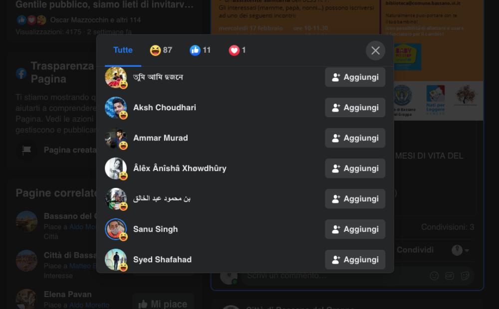 Il Comune di Bassano pubblica un post sulla sua pagina Fb sulle “letture ad alta voce” per i bambini e riceve un centinaio di like “ahahah”. Da India, Pakistan, Afghanistan, Bangladesh, Malaysia, Indonesia, Nepal, Vietnam...