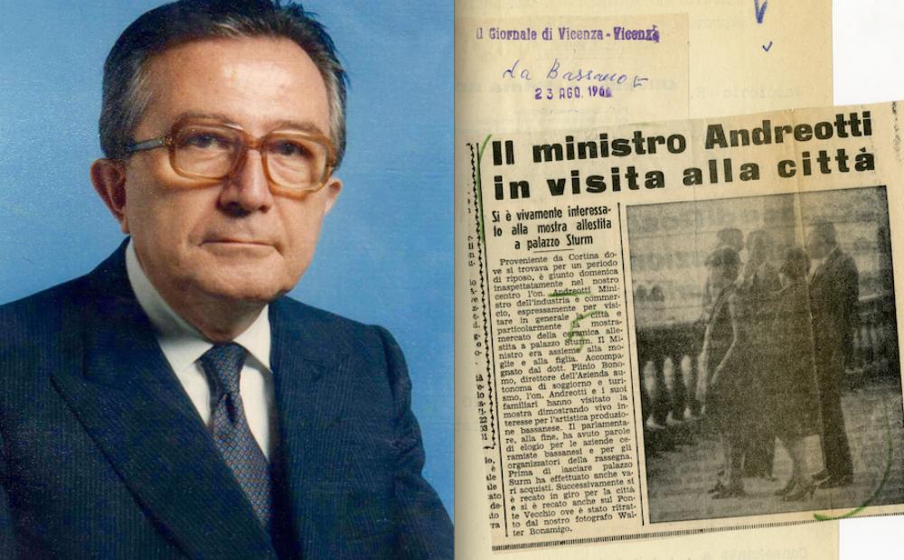 Nel 1966 l’occasione della visita dell’allora Ministro dell’Industria e Commercio fu possibile, di ritorno dalla villeggiatura a Cortina, in occasione della Mostra della Ceramica a Palazzo Sturm, un tempo importante kermesse economica della terra democristiana vicentina, che dava lustro e visibilità all’arte dei maestri ceramisti bassanesi e novesi.