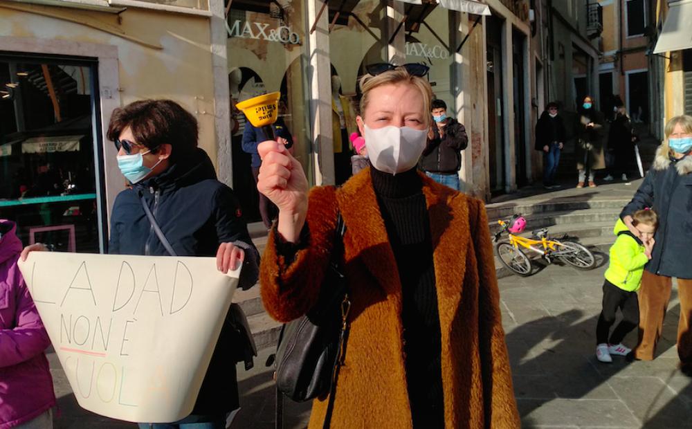 Il sindaco Elena Pavan al flash mob per la riapertura delle scuole (foto Alessandro Tich)
