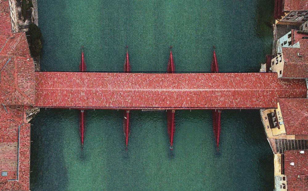 Ma che il Ponte di Bassano non sia “dritto” lo conferma in maniera inequivocabile anche la foto - che ho pubblicato sopra e che pubblico anche in calce a questo articolo per la visione in ingrandimento - scattata con il suo drone da Fulvio Bicego.