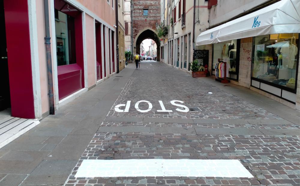 Vedere foto per credere: nel tratto di via Roma che confluisce in piazzetta dell'Angelo, proveniendo da Porta Dieda, è stato dipinto fresco di bianco un grande segnale orizzontale di stop. Il bello è che da sempre le auto transitano in quel tratto della via in direzione opposta, per andare fino al semaforo e poi proseguire per discesa Brocchi.