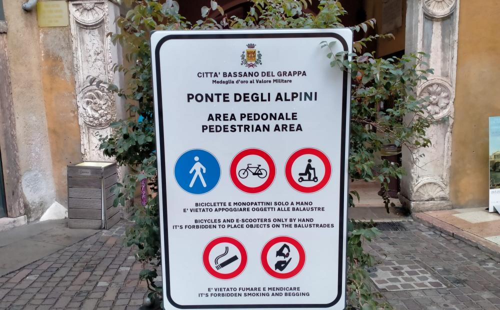 In vigore i rinnovati divieti sul Ponte di Bassano, con tanto di cartelli bilingue ai due ingressi. Eppure…
