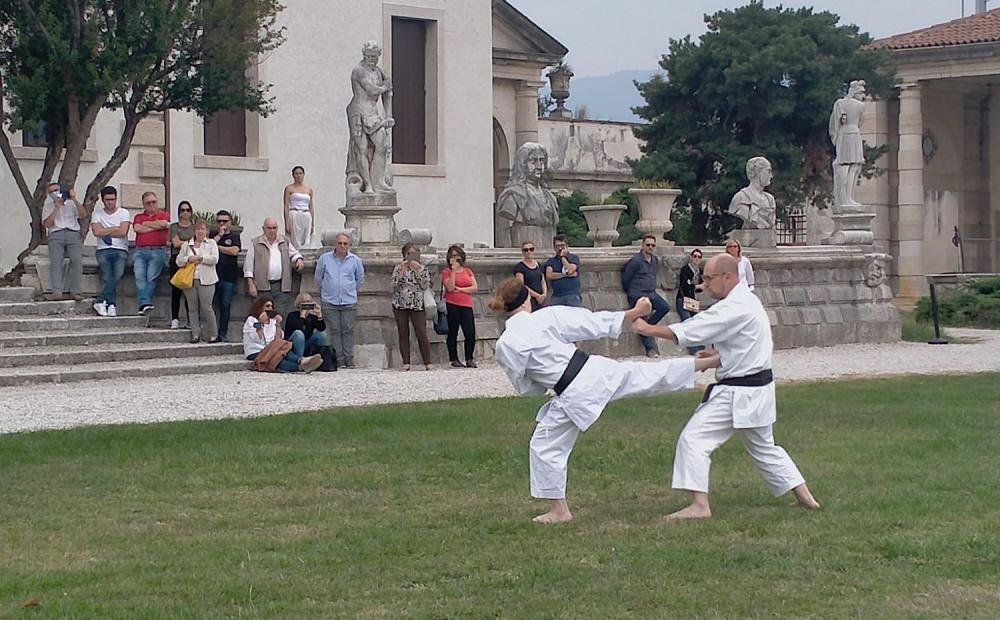 Il parco della Villa fa da Dojo (“Luogo dove si segue la via” e dove si pratica il Karate) e le architetture della stessa fanno da sfondo alle varie dimostrazioni delle cinture avanzate del Karate Club Bassano, in un mix davvero suggestivo di esibizioni di quest’arte marziale basata sui valori indissolubili della disciplina e del rispetto.