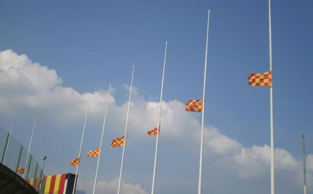 Bandiere a mezz'asta allo stadio per la tragedia dell'Abruzzo