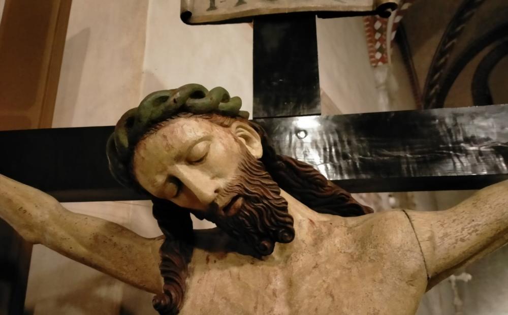 Qualche metro più in là, il Gesù Cristo sul Crocifisso appena restaurato non può parlare, ma si percepisce che è contento.