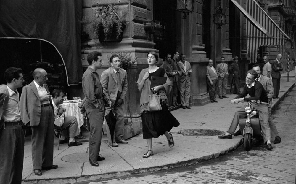 Il suo capolavoro è uno scatto della ragazza che passa per l’angolo di una strada, attorniata dagli sguardi bramosi e dagli apprezzamenti espliciti di un gruppo di uomini, validi esponenti del “pappagallismo” italiano. È l’autentica icona della fotografa statunitense, che gode del primato di secondo poster più venduto al mondo e che ancora oggi, nel tempo del politically correct, sollecita accese discussioni sul tema del sessismo.