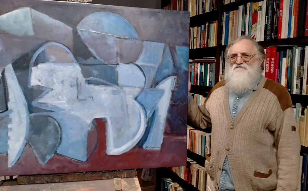Bruno Pedrosa accanto a un suo dipinto nel suo atelier di Asolo (foto Alessandro Tich)