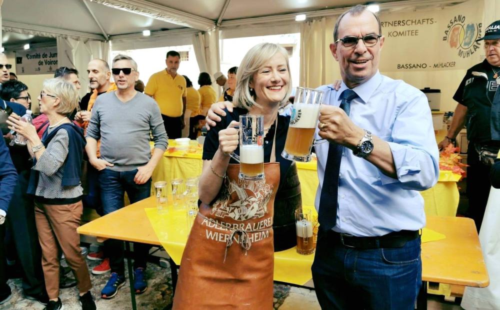 I sindaci Elena Pavan e Frank Schneider nello stand di Mühlacker all’ultima Fiera Franca del 2019 (fonte immagine: Facebook/ Partnerschafts-Komitee Mühlacker e.V.)