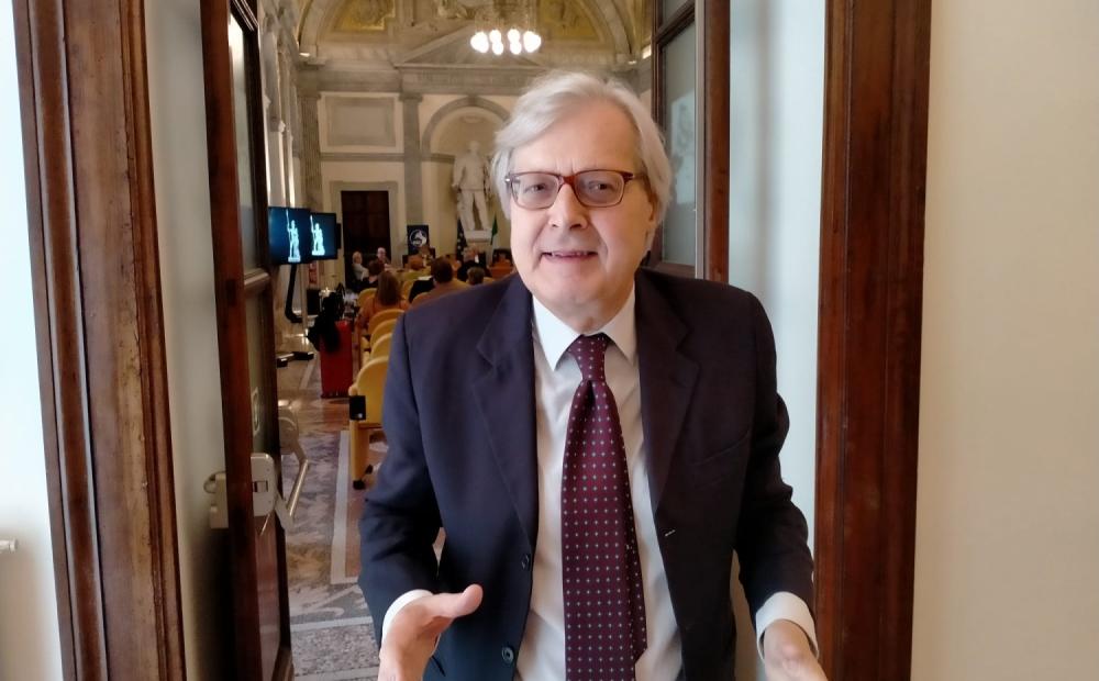 In realtà a Roma il già conduttore degli Sgarbi Quotidiani una polemica la lancia. Ma nei confronti del Ministero in cui ci troviamo. “L’attuale ministro in scadenza, volendo seguire la Francia, gli ha cambiato il nome e lo ha chiamato Ministero della Cultura, come sta scritto nella brutta lapide che si vede all’entrata. Dobbiamo riportare la denominazione originaria di Ministero dei Beni Culturali, che indica il suo ruolo di conservazione dei beni artistici e del patrimonio.” Che stia già parlando da prossimo ministro?