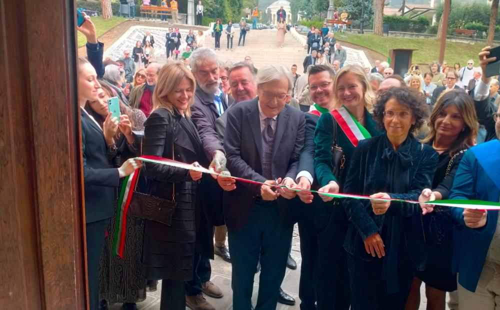 Ma torniamo all’inaugurazione. Il corteo delle autorità, preceduto dal gonfalone del Comune di Possagno, scende in direzione del Museo dove successivamente alla benedizione del parroco si taglia finalmente il nastro della restituzione della casa di Canova alla comunità.
