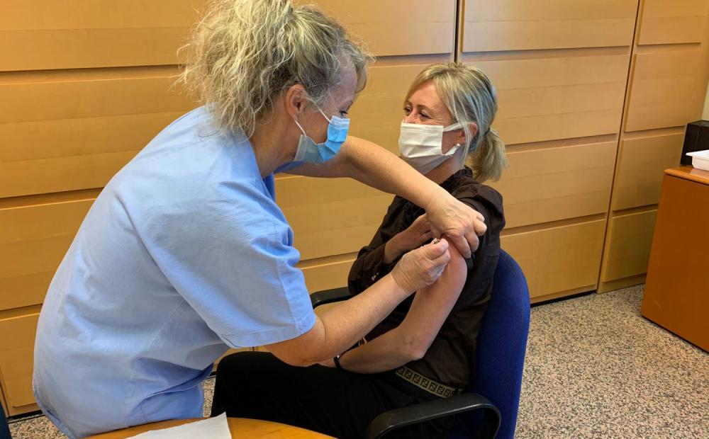 Partita nell’Ulss 7 la campagna di vaccinazione antinfluenzale: il sindaco di Bassano Elena Pavan, assieme al sindaco di Santorso Franco Balzi, si sottopone pubblicamente alla somministrazione del vaccino