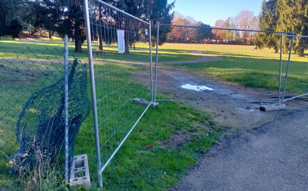La stagione è quella che è, l’erba non si presenta propriamente come un prato inglese, c’è qualche mucchio di fango qua e là, i viali sono ovviamente cosparsi di fogliame ma non c’è nulla che faccia gridare allo scandalo. In più all’interno del perimetro del parco pubblico non c’è alcuna barriera mobile che impedisca la libera circolazione delle persone.