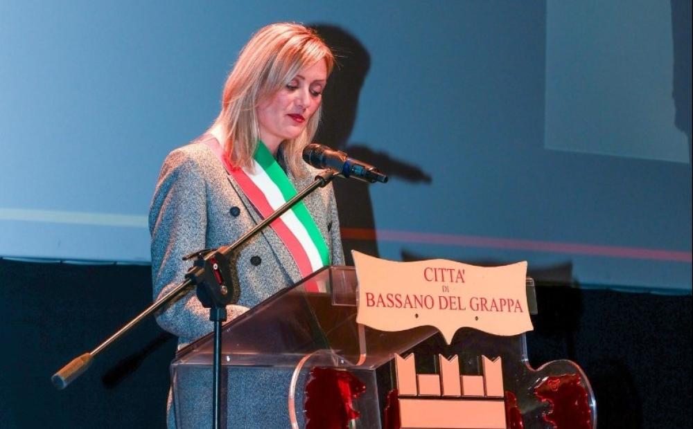 Il sindaco Elena Pavan durante il suo discorso alla cerimonia di San Bassiano (fonte immagine: Facebook / Città di Bassano del Grappa)