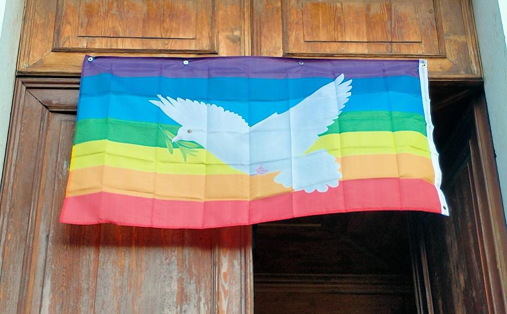 Ma quando una bandiera della pace viene appesa sopra il portone di una chiesa tutte queste questioni, tutte queste divergenze e tutti questi distinguo si annullano. Automaticamente. Una chiesa non è solo il luogo più sacro, ma anche il più adatto e più votato a lanciare un messaggio come questo. È il luogo dove la pace è un elemento della stessa liturgia e quindi della nostra stessa fede. Dove prima del Covid ci scambiavamo a messa il segno della pace stringendoci le mani, mentre oggi veniamo ancora invitati all’opzione alternativa di scambiarcelo incrociando gli sguardi. Ma anche senza contatto fisico, è un rito che ci esorta alla reciproca riconciliazione. Ed esporre una colomba con l’ulivo sulla facciata principale della chiesa altro non è che proiettare all’esterno il precetto di una virtù di convivenza valido per tutti, agnostici ed atei compresi.