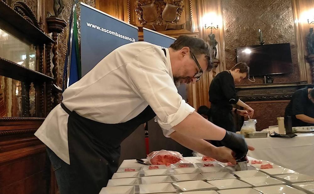 Giovanni Scapin nella fase di preparazione del menù per la degustazione dell’Asparago di Bassano in consiglio regionale a Venezia (foto Alessandro Tich)