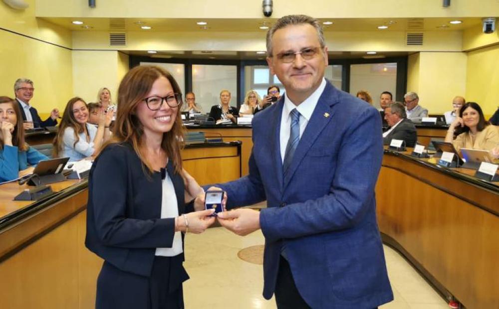Chiara Luisetto col presidente Roberto Ciambetti al suo insediamento in consiglio regionale