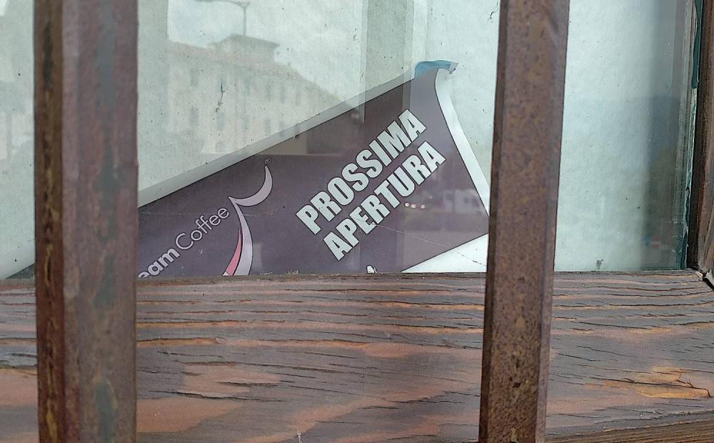 Mi riferisco a un avviso - quello che vedete nella foto pubblicata sopra - rimasto “incastrato” dietro la vetrata della porta d’ingresso, sprangata oramai da cinque anni, con la seguente scritta ancora ben leggibile: “Prossima apertura”.
