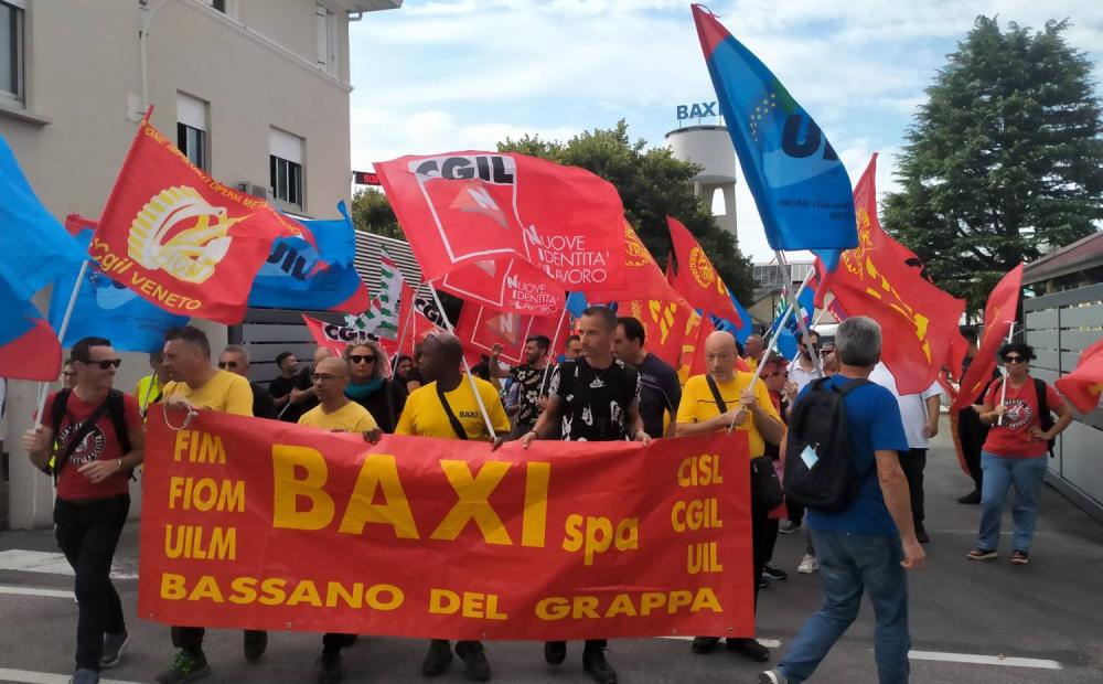 È il giorno del corteo dei lavoratori di Baxi Spa per la manifestazione di protesta indetta dalla Rsu assieme a Fiom Cgil, Fim Cisl e Uilm per scuotere la città sul problema del destino occupazionale degli oltre 500 dipendenti diretti dell’azienda, a cui si aggiungono le centinaia di lavoratori “somministrati” tramite agenzie.