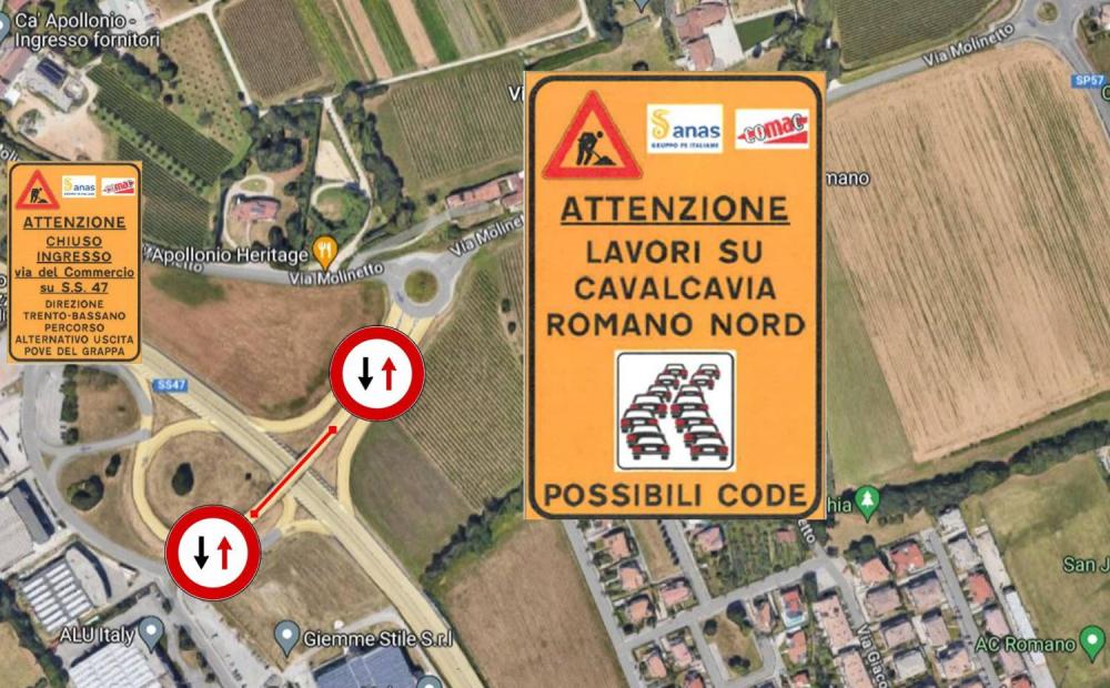 Stanno iniziando in questi giorni alcune importanti opere da parte di Anas sullo svincolo “Romano Nord” della SS 47 Valsugana. L'avvio del cantiere, comunicato nei giorni scorsi al Comune, prevede la chiusura parziale della viabilità con scorrimento del traffico su una sola corsia a senso unico alternato regolato da semaforo.