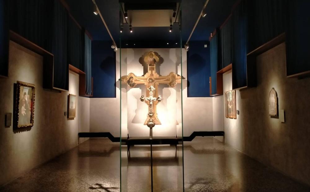 Gioiello assoluto del Museo riallestito: la sala del mirabolante Crocifisso dipinto di Guariento di Arpo, arricchita dal prezioso crocifisso del Filarete, esposto in una teca in perfetto equilibrio prospettico con la Croce del Guariento sullo sfondo.