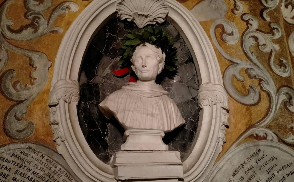 Qui, nell’Anno Domini 1544, lasciava questa vita terrena Teofilo Folengo, nativo di Mantova, monaco benedettino e grande poeta macaronico, noto con lo pseudonimo di Merlino Coccajo, Merlin Cocai per gli amici.