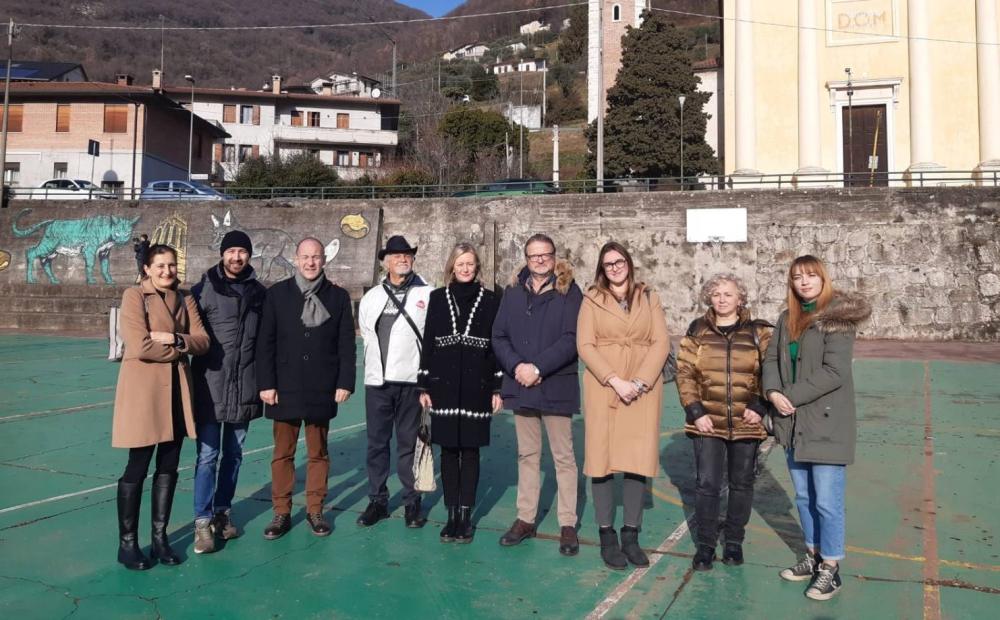 Tutti insieme appassionatamente - il duo di ruspe Pavan e Zonta, più i due consiglieri comunali “di casa” Lucia Fincato e Nicola Schirato, più i rappresentanti del consiglio di quartiere con la presidente Diletta Pontarolo - per la presentazione dell’intervento che interesserà la frazione collinare. Vale a dire il progetto di sistemazione della piattaforma ubicata nei pressi della chiesa, che diventerà una vera e propria “piazza” polivalente.