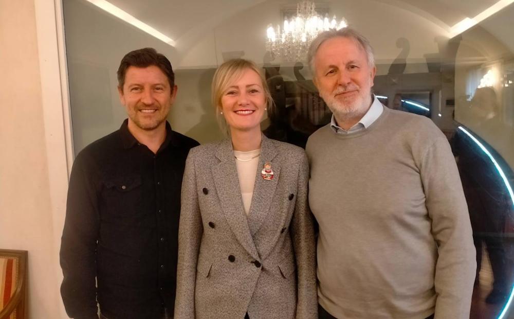 Terminata la conferenza stampa, si procede alla classica foto di rito dei relatori dell’incontro e cioè, in questo caso, dei tre primi cittadini.