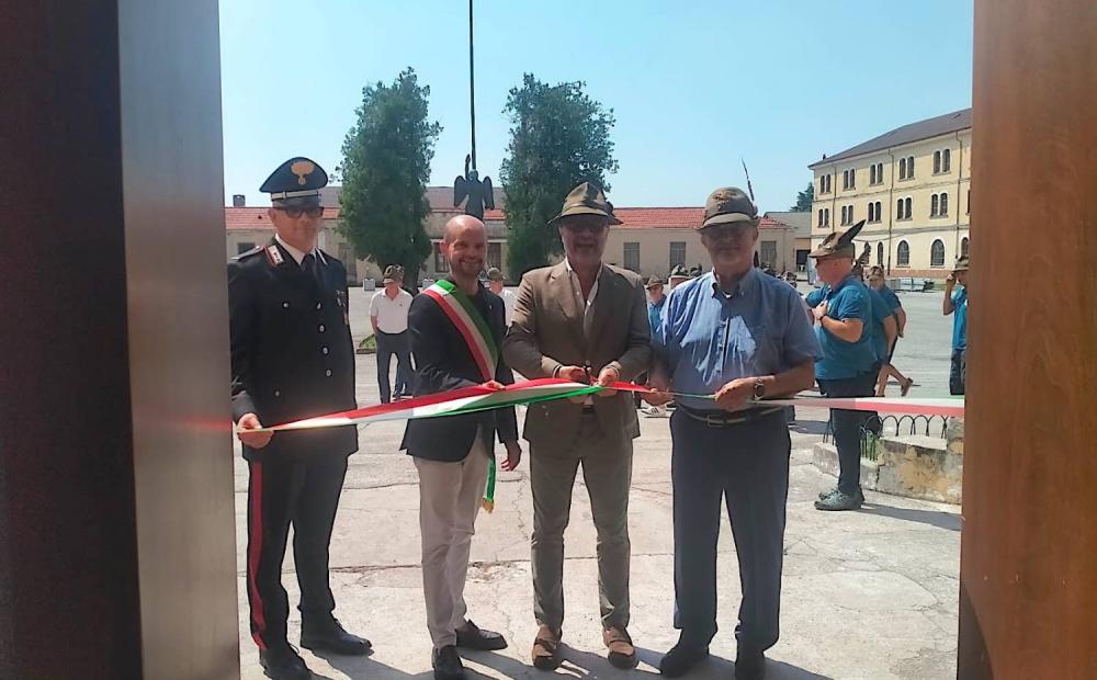 Penne nere sul pezzo nonostante il caldo: taglio del nastro per l’intervento di sistemazione della Palazzina Comando dell’ex Caserma Montegrappa, concessa agli Alpini, grazie a un contributo della Regione Veneto alla Sezione ANA Montegrappa