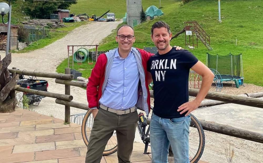 Uno è Simone Bontorin, sindaco di Romano d’Ezzelino. L’altro è Francesco Dalmonte, sindaco di Pove del Grappa. Quest’ultimo è ritratto nella foto con una maglietta a maniche corte, nonostante il fatto che in questo periodo le temperature alle nostre latitudini non siano più propriamente tropicali.